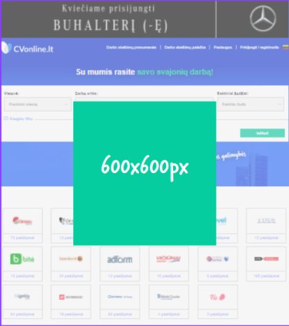 - Baneris skelbimų kategorijoje (893x160 px) - reklaminis skydelis nukreiptas į tikslinę auditoriją. Publikavimo terminą galima išskaidyti etapais. Galimybė keisti pasirinktą darbo skelbimų kategoriją.